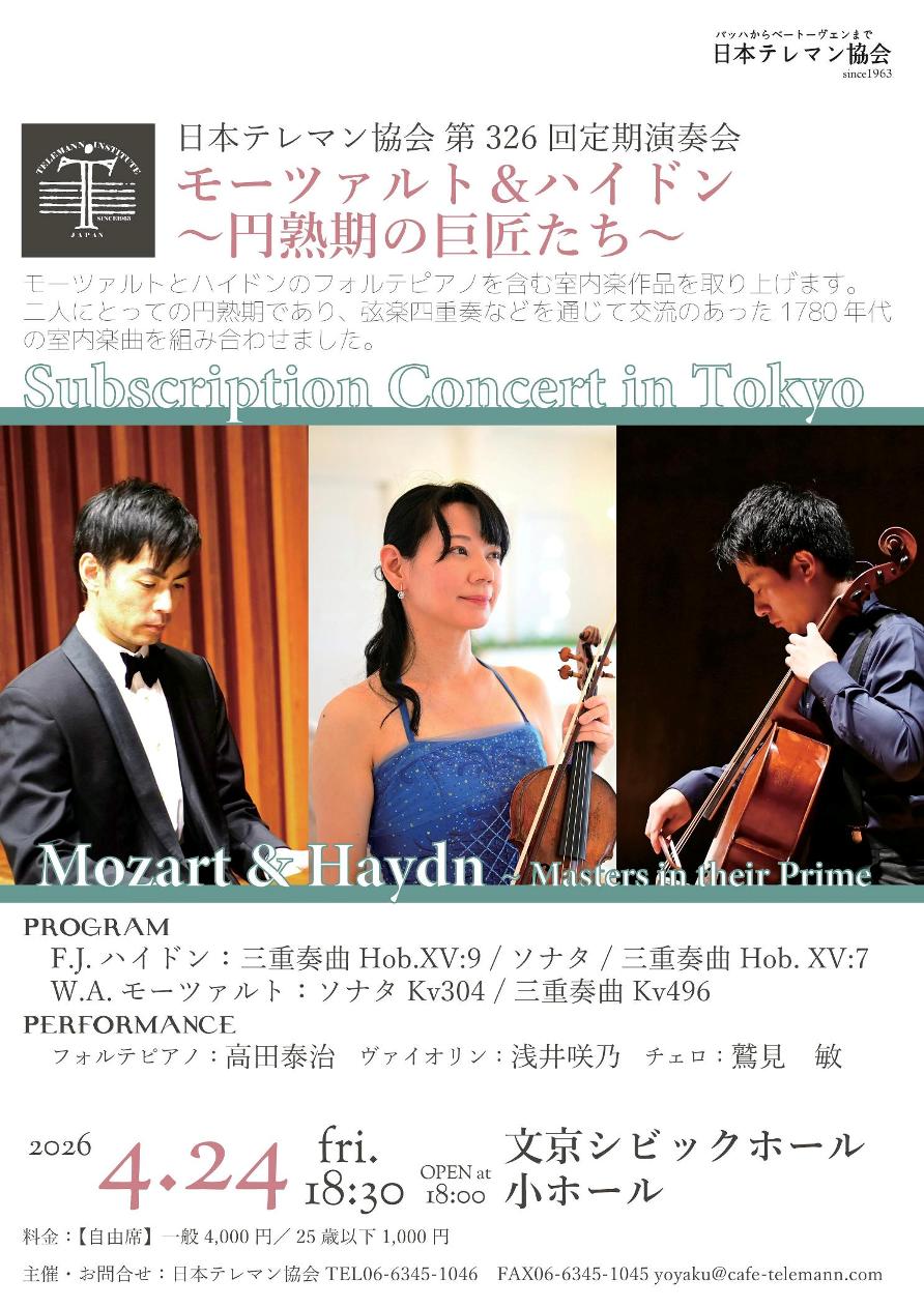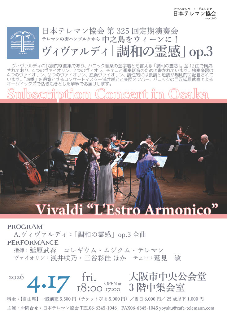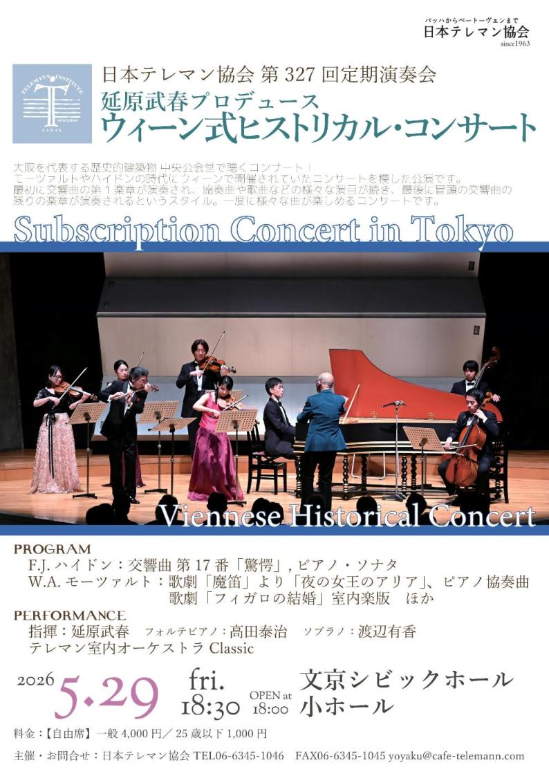 | ※日本テレマン協会が出演する公演のうち、一般公開されていない公演につきましては掲載致しません。 |