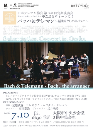 | ※日本テレマン協会が主催する公演以外の公演につきましては、主催者の情報公開とタイムラグが生じる可能性がございますので、予めご了承ください。 |